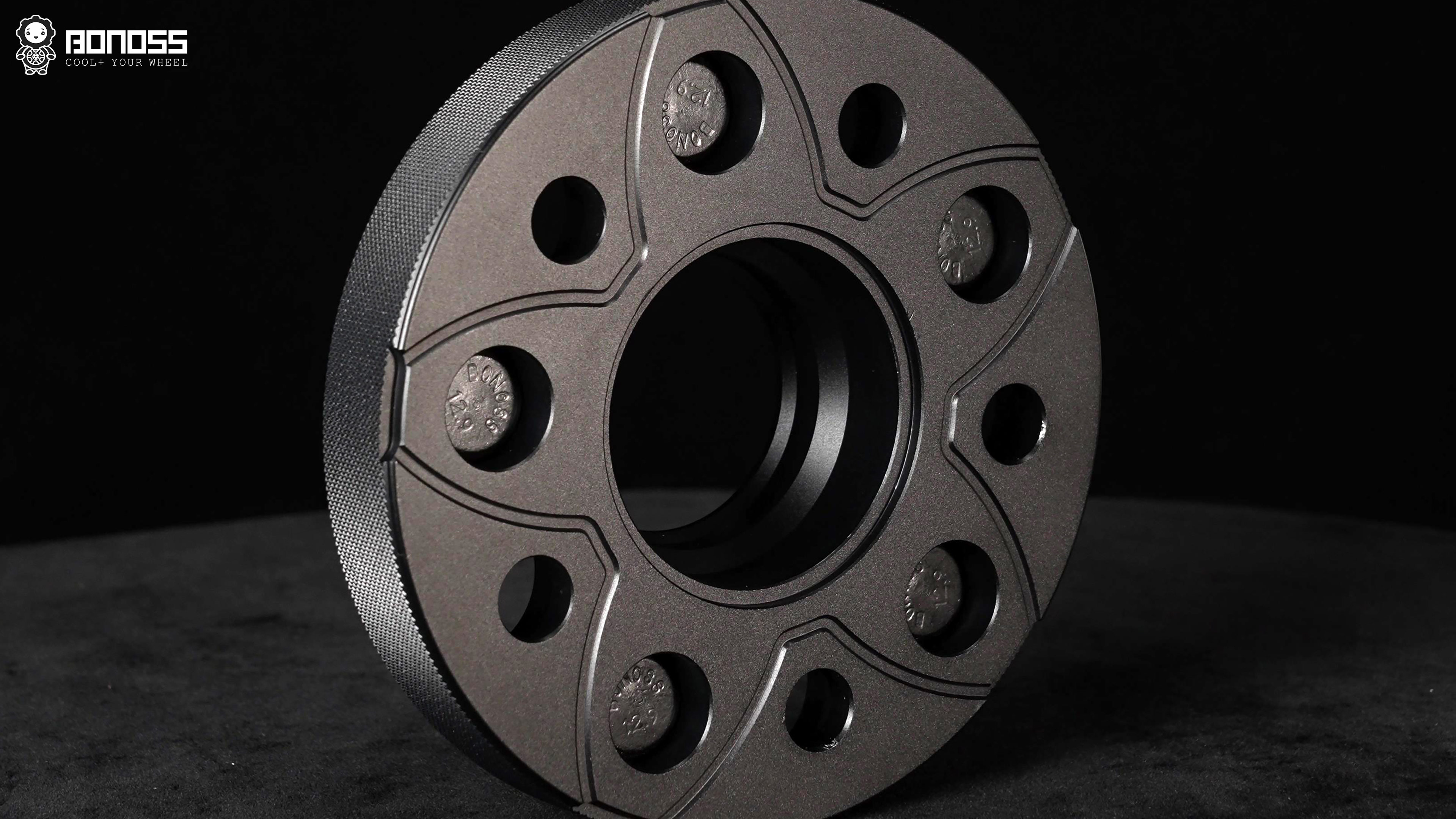 **To further prevent corrosion in wheel spacers, BONOSS applies a black hard anodizing surface treatment. It is ideally suited for aluminum to improve corrosion resistance. This process makes BONOSS forged active cooling wheel spacers more durable and corrosion-resistant.